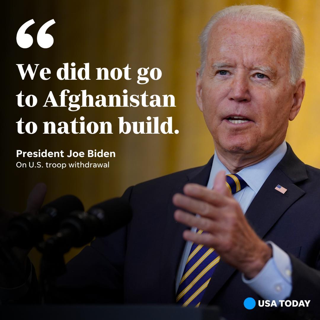 "We did not go to Afghanistan to nation build," Biden said in remarks at the White House. "It's the right and the responsibility of Afghan people alone to decide their future and how they want to run their country."