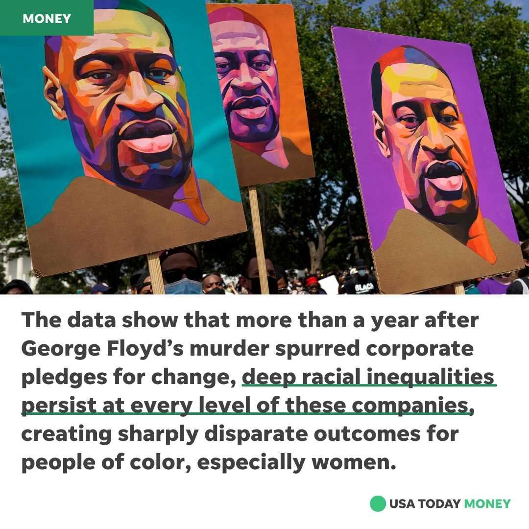The data shows that more than a year after George Floyd’s murder spurred corporate pledges for change, deep racial inequalities persist at every level of these companies, creating sharply disparate outcomes for people of color, especially women of color.
