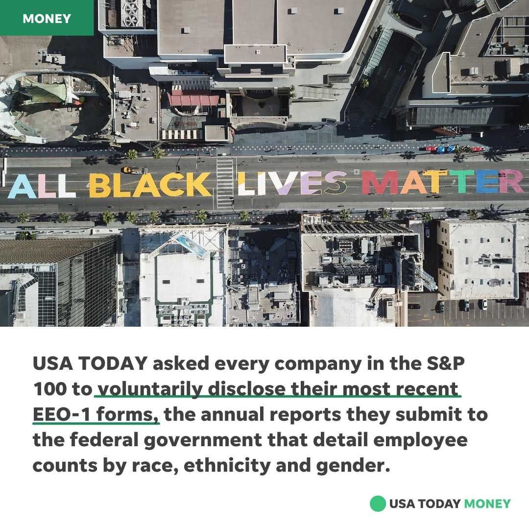 USA TODAY asked every company in the S&P 100 to voluntarily disclose its most recent EEO-1 form, the annual reports submitted to the federal government that detail employee counts by race, ethnicity and gender in 10 job categories.