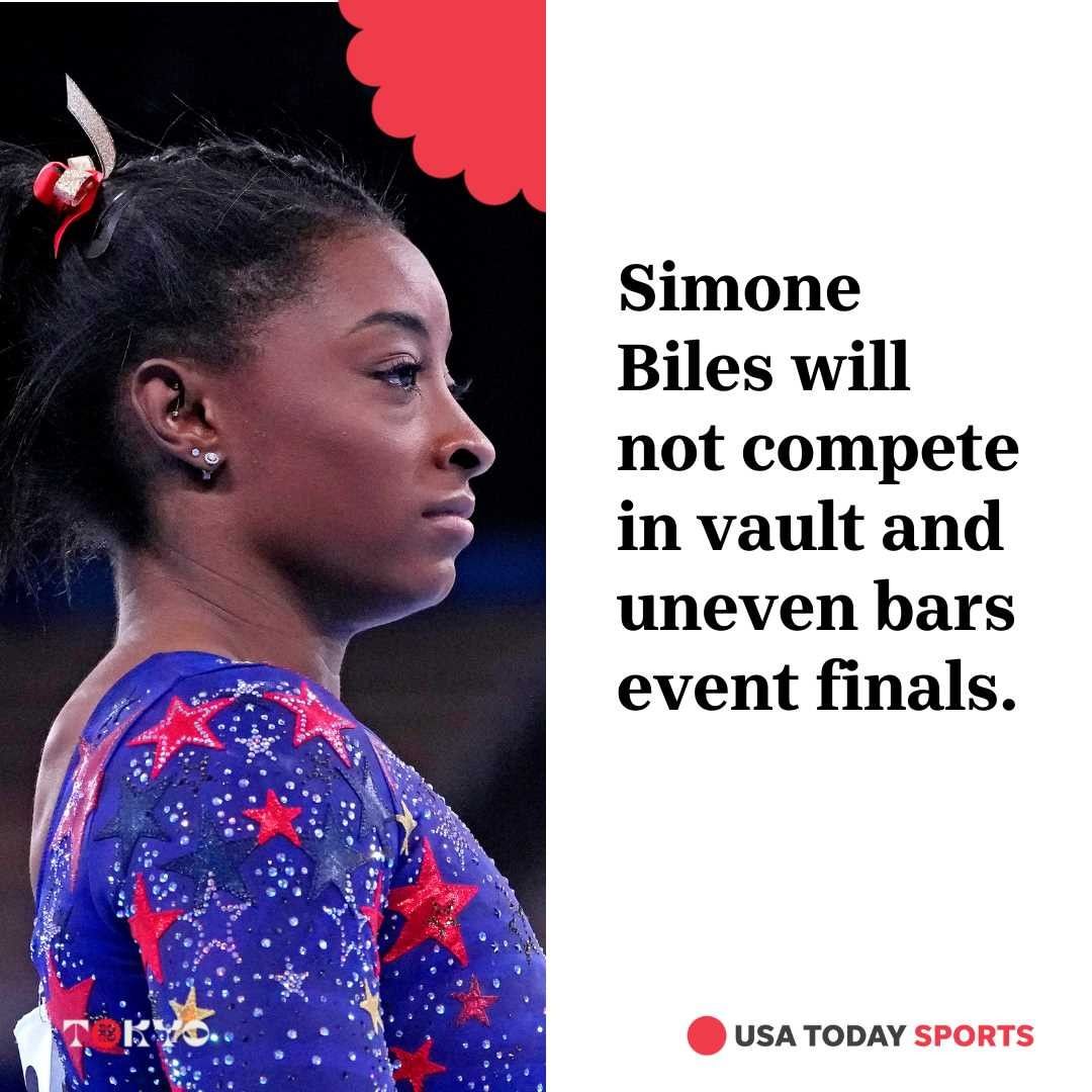 Simone Biles will not compete in two more events, the vault and uneven bars event finals, citing that she still is not ready to compete again after losing her sense of where she is in the air.