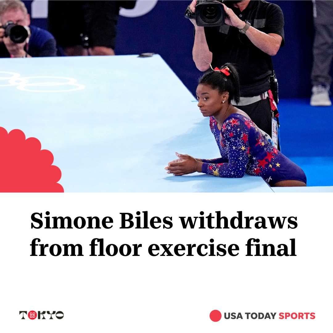 USA Gymnastics announced Biles' withdrawal from the floor exercise final Sunday, a day before it is to be contested. Balance beam, the last event final, is Tuesday, but a decision on her availability for it has yet to be made.