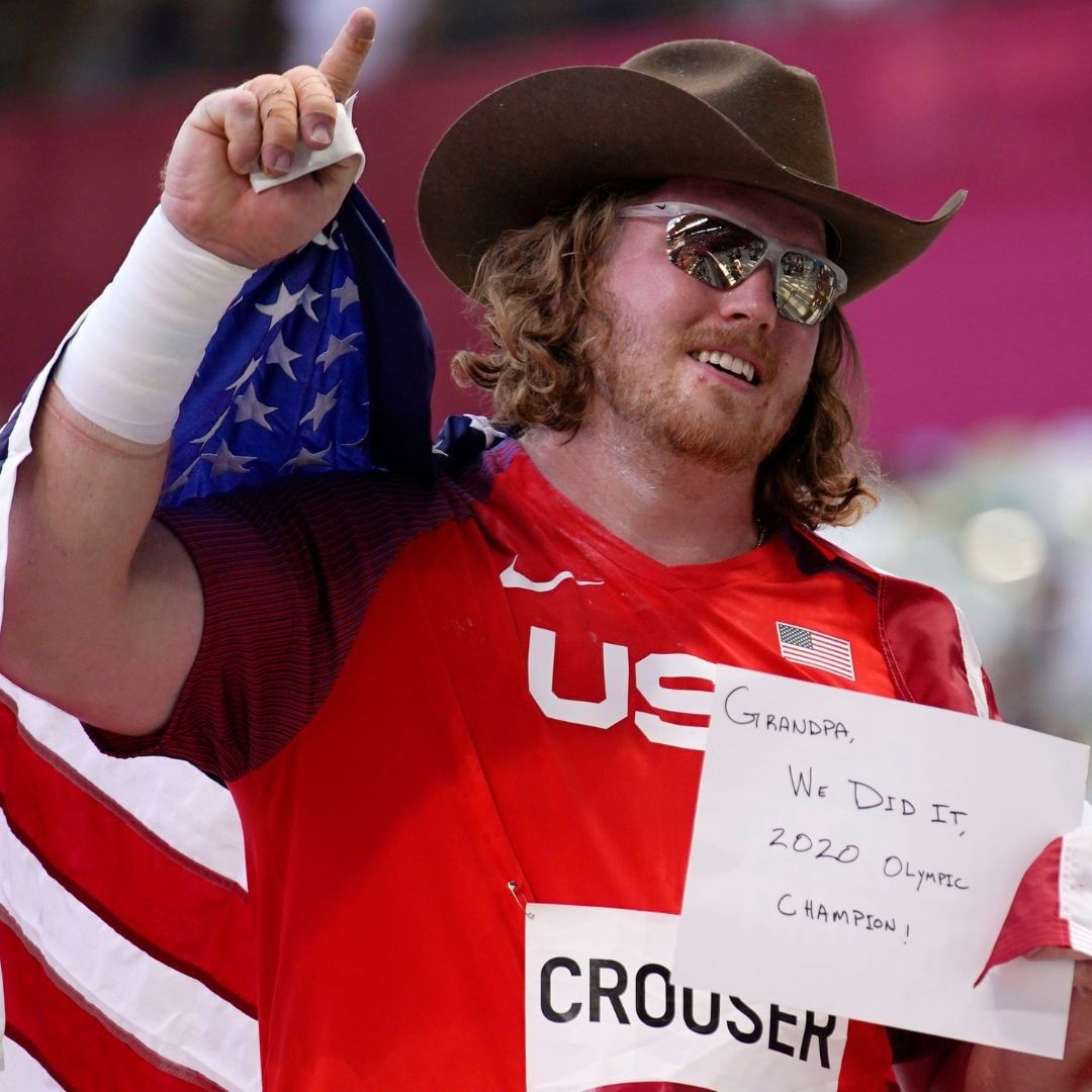 "Grandpa, we did it." On his first attempt, U.S. shot-put world-record holder Ryan Crouser took a deep breath, did the popular shot put spin technique and boom – Olympic record. Crouser tossed 74 feet, 11 inches to break his 2016 Olympic record of 73 feet, 10¾ inches. In Crouser's second attempt, he increased his own record. The 6-foot-7 shot putter tossed a monster throw of 75 feet, 2¾ inches. Crouser saved his best for last, though. The Oregon native threw 76 feet, 5½ inches on is last attempt to break the Olympic record for a third time of the competition. 📸: Andrew Nelles, @imagncontent #crouser #ryancrouser🏅 #olympics #tokyo #shotput #goldmedal