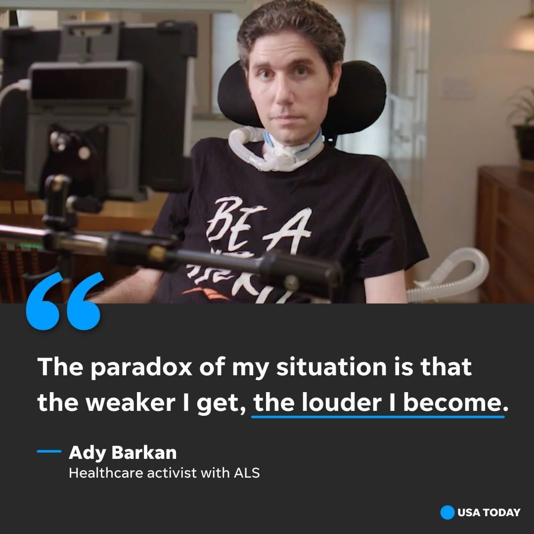 “ALS is a death sentence, and I have had to grapple with the knowledge that I'm not going to be around for as long as I had hoped," Barkan told USA TODAY. "Politics and movement building is about bringing people together to do much more than we ever could accomplish alone."