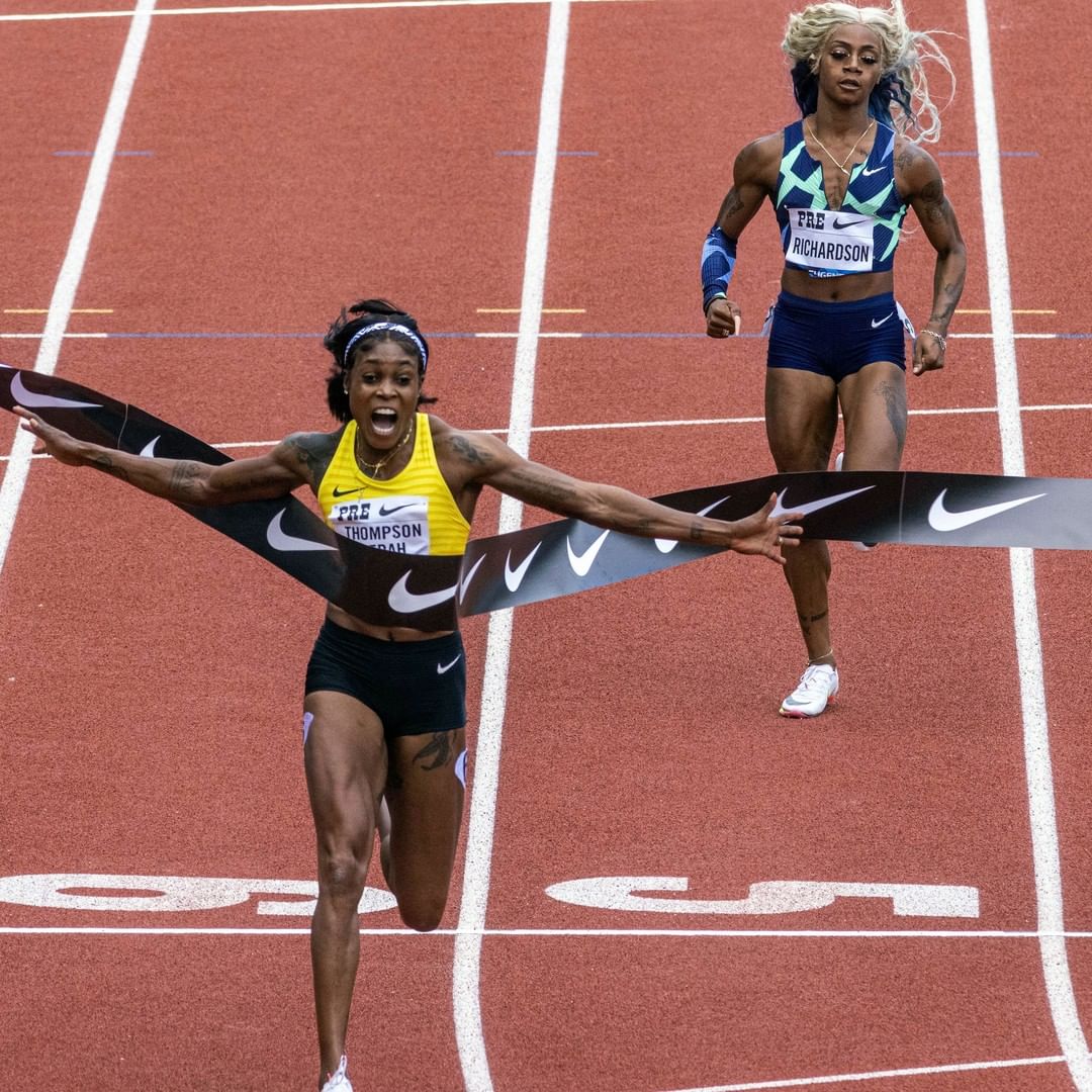 Elaine Thompson-Herah, Shelly-Ann Fraser-Pryce and Shericka Jackson took first, second and third, respectively. The Jamaican trio also swept the podium in Tokyo, when Thompson-Herah set a new Olympic record with a time of 10.61. She finished the race at the Prefontaine in Eugene, Oregon, with a world-leading time of 10.54.