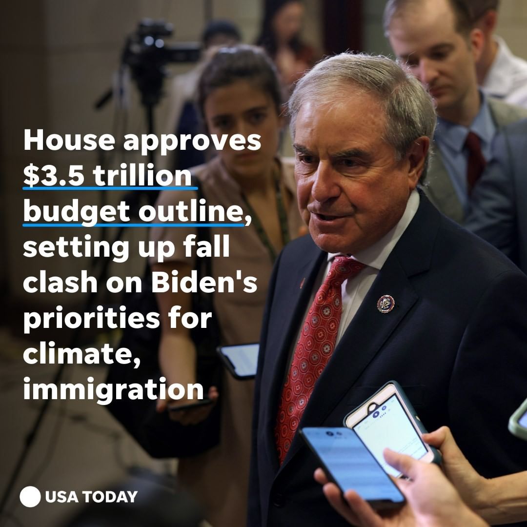 The House approved a $3.5 trillion budget blueprint Tuesday in a straight party-line vote, setting up a fall clash over the details of President Joe Biden's proposed expansion of social programs that Republicans blasted for higher taxes and "wasteful" spending.
