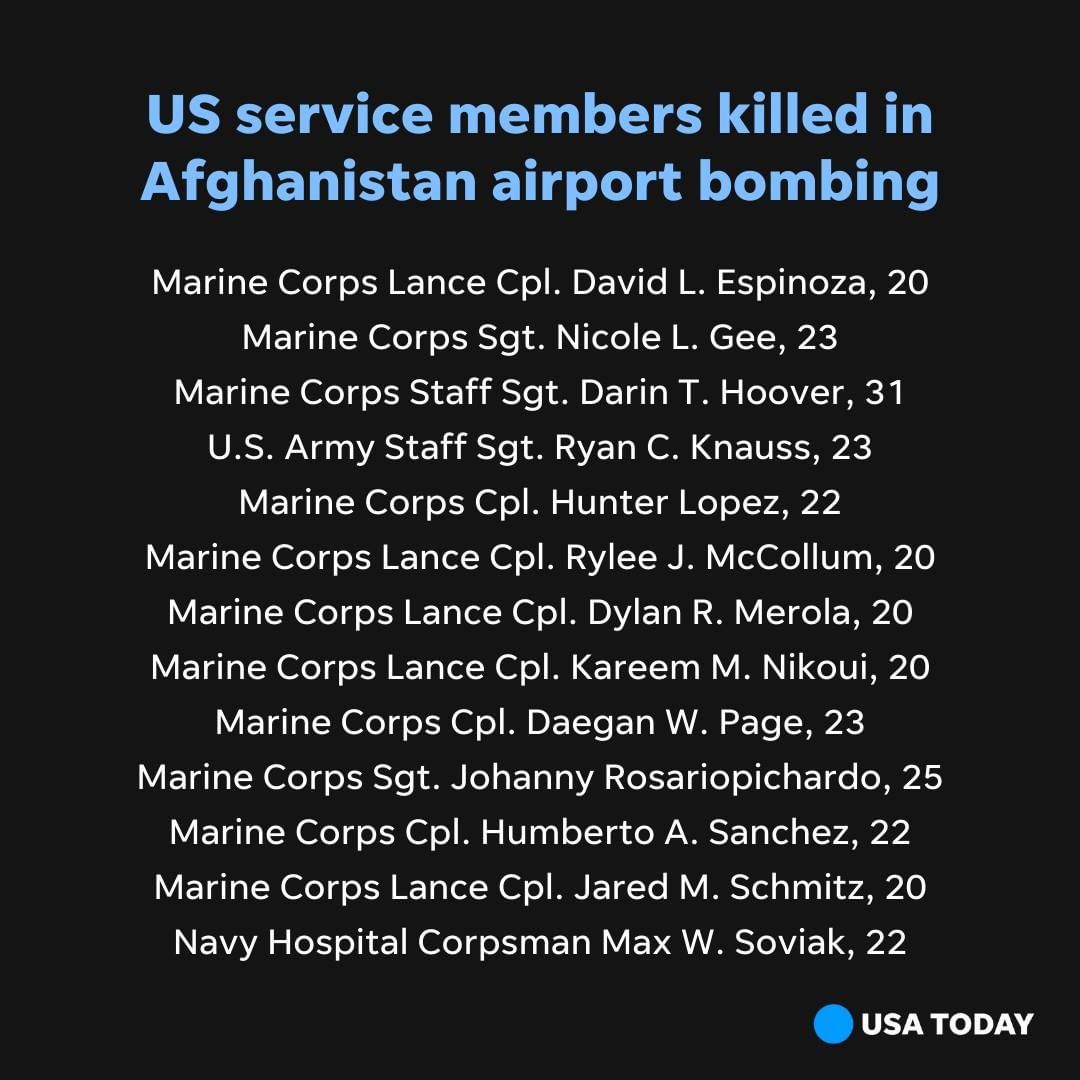 Names of the 13 US service members killed in Afghanistan airport bombing: They made the 'ultimate sacrifice'