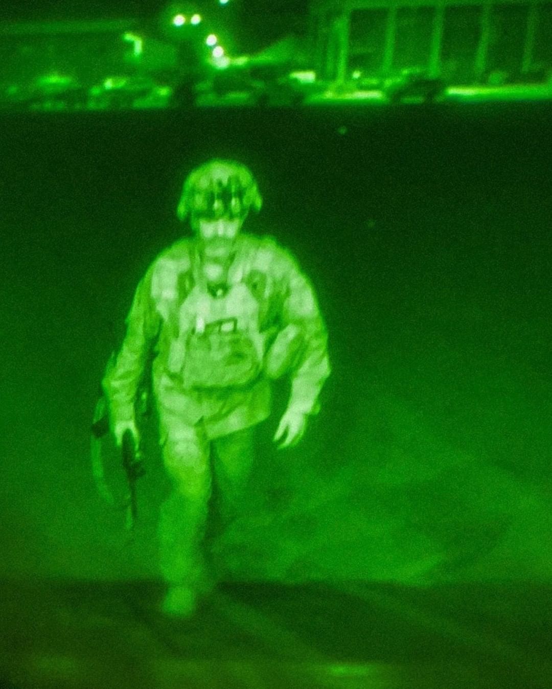 Donohue, with a Kabul airport hangar behind him, climbed aboard the final Air Force aircraft carrying U.S. forces to leave the country. The plane left just before a self-imposed U.S. deadline to evacuate.