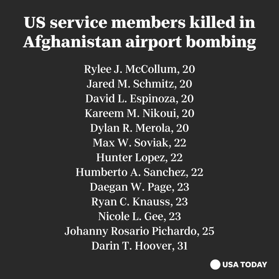 Thirteen U.S. service members were killed in a suicide bombing attack near Kabul's Hamid Karzai International Airport on Thursday as thousands sought to flee following the Taliban's takeover of Afghanistan.