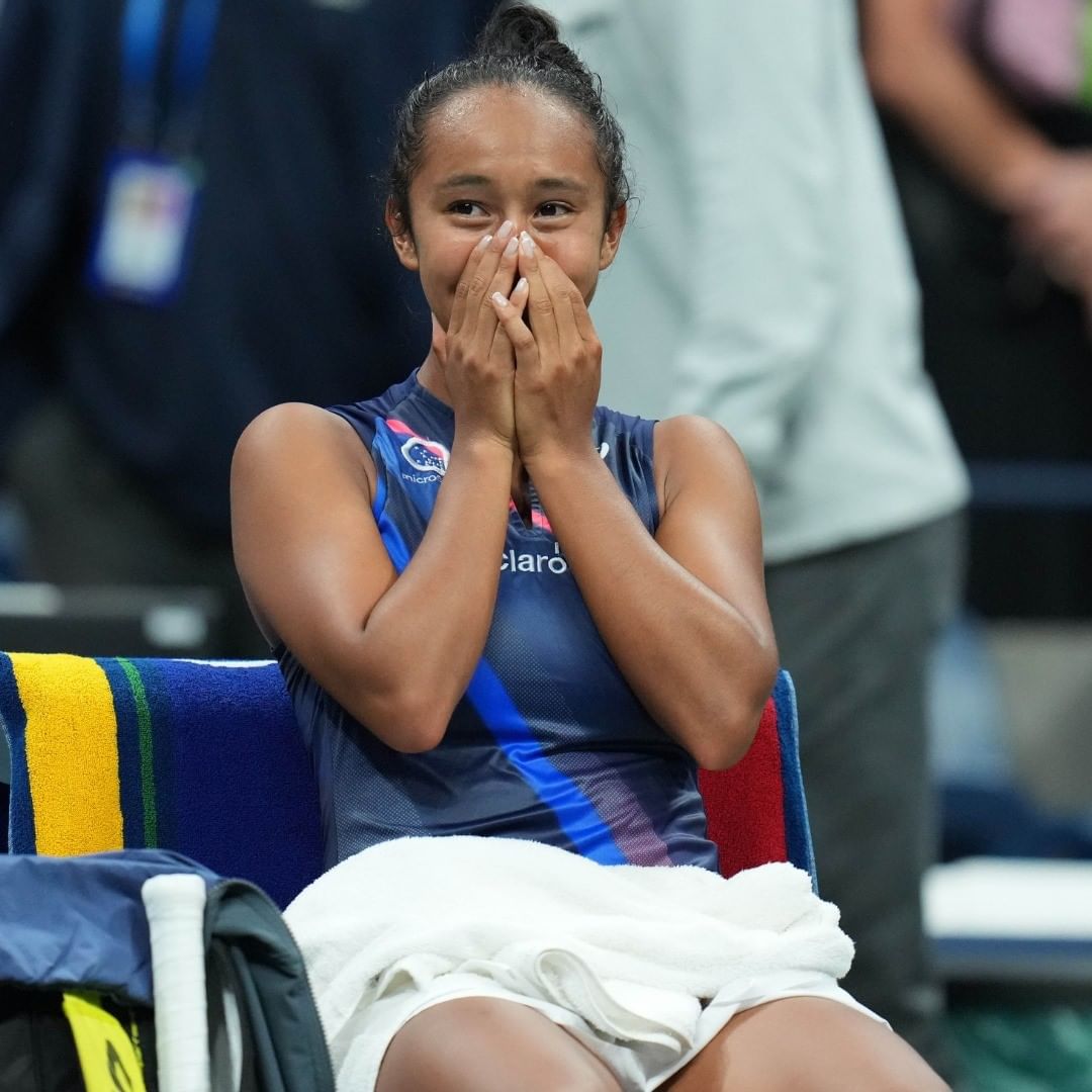 Canada's Leylah Fernandez, 19, celebrates after defeating No. 2 seed Aryna Sabalenka of Belarus in the semifinals of the 2021 U.S. Open in New York City on Thursday, Sept. 9, 2021.