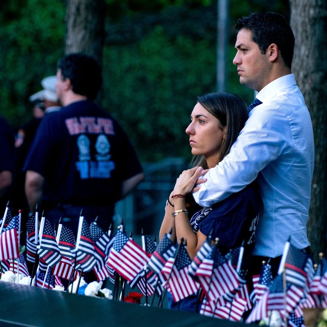 In New York City, people gathered for the annual reading of the names and Tribute in Light at the 9/11 Memorial and Museum Saturday morning. #september11 📸 Craig Ruttle @gettyimages Mike Segar-Pool @gettyimages Ed Jones @gettyimages