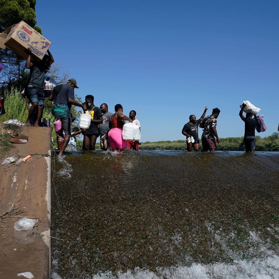 Thousands of Haitian migrants used a dam to cross to and from the United States from Mexico on Friday.