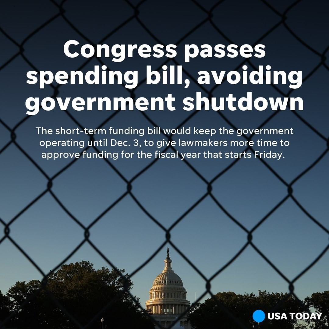 The House of Representatives voted Thursday to join the Senate in extending funding for the federal government through Dec. 3, averting a midnight shutdown.