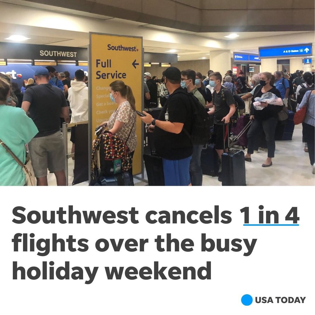 Southwest's Sunday cancellation are on top of 808 cancellations on Saturday, or nearly one in four flights. This during a busy travel weekend given a federal holiday on Monday.