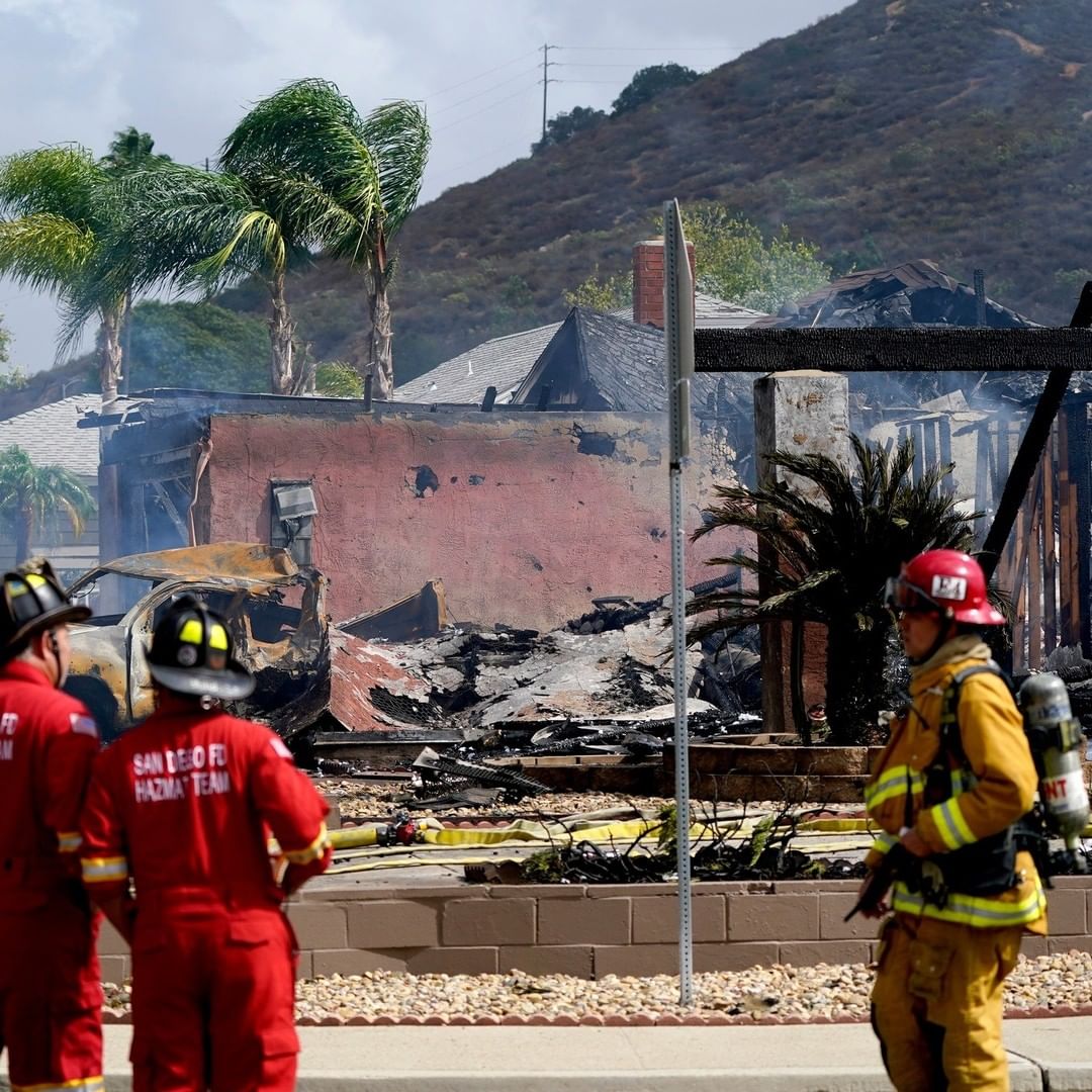 The crash happened shortly after noon in the city of Santee, about 20 miles northeast of downtown San Diego, Fire Chief John Garlow said.