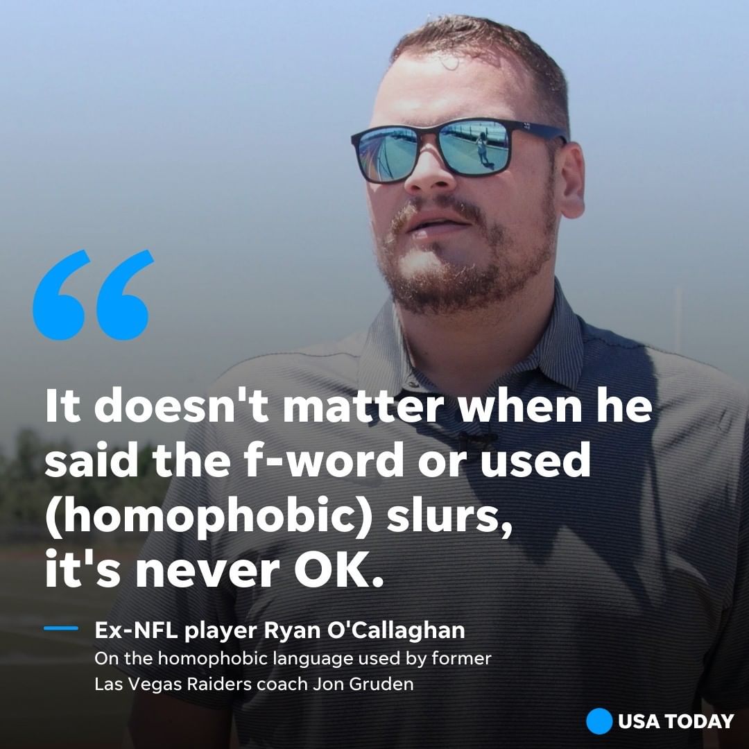 Former NFL offensive lineman Ryan O'Callaghan, who came out as gay in 2017, condemned the homophobic language used by former Las Vegas Raiders coach Jon Gruden and said he believes it was right for him to step down due to the emotional harm caused.