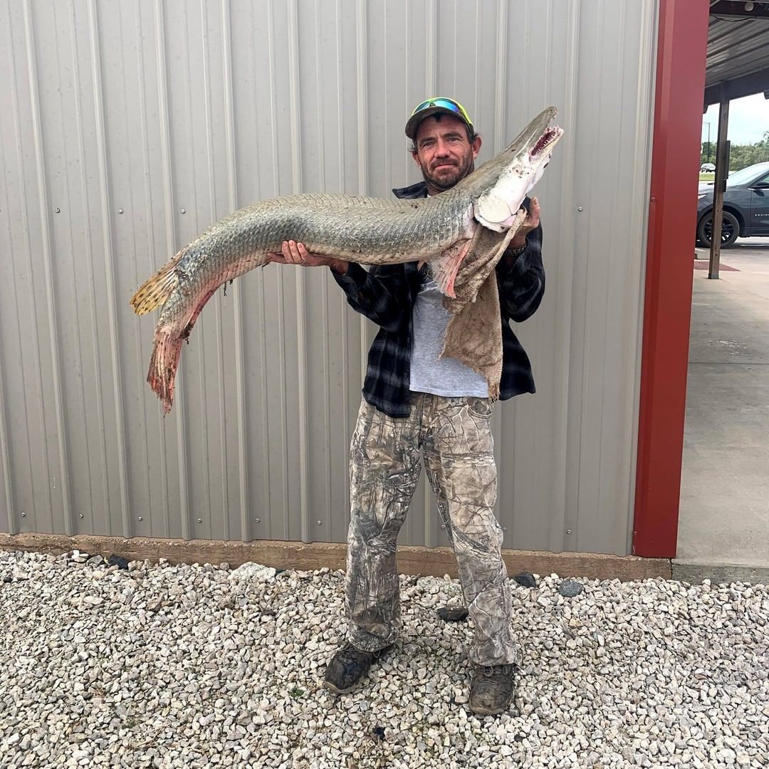 🎣This is a real big fish tale: A fisherman in Kansas tossed a line in the water and caught a prehistoric predator fish that dates back nearly 100 million years. Danny "Butch" Smith II of Oswego, Kansas, who landed the fish, a 4-foot, 6-inch alligator gar, weighing 39.5 pounds, knew he had caught something unusual. His fishing buddy identified the fish and said, "They ain't supposed to be here (in Kansas)," Smith said. Kansas Department of Wildlife and Parks officials confirmed the identification and are investigating how the fish, called a "living fossil," got into the Neosho River in southeast Kansas, east of the city of Parsons. 📸 Kansas Department of Wildlife and Parks #alligatorgar #bigcatch #gonefishing
