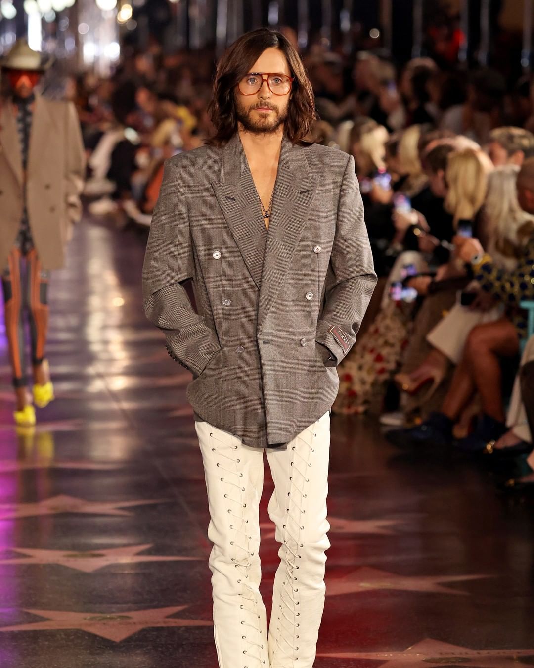 Stars strutted their stuff at the Gucci Love Parade fashion show in Los Angeles this week, showcasing nostalgic outfits inspired by old Hollywood glamour. Actor Macaulay Culkin wore a colorful jacket with a blue Hawaiian-style shirt, brown slacks and a white Gucci belt. He was joined on the runway by Jared Leto, who drew applause in a double-breasted blazer, white pants and white boots. Also walking the runway was British actress Jodie Turner-Smith, who showed off an oversized feathery red number with a green collar. Tap the link in bio to see more pictures of the stars at the show. 📸 Taylor Hill, WireImage; Amy Sussman, @gettyimages #gucciloveparade #macaulayculkin #jaredleto #jodieturnersmith