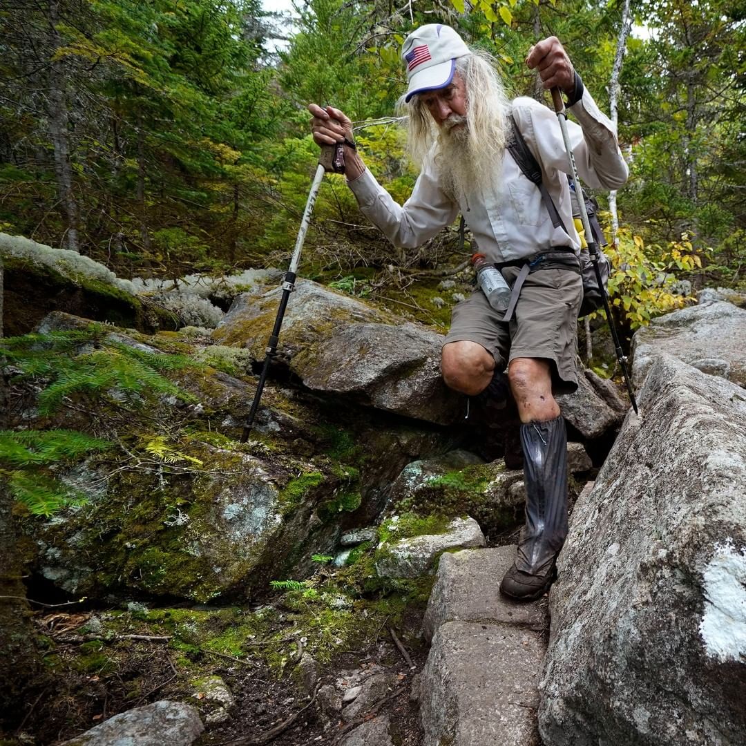 Eberhart, known by the trail name Nimblewill Nomad, acknowledged that despite having tens of thousands of miles under his belt, the trail was tough going at his age, leading to quite a few spills on slippery rocks.
