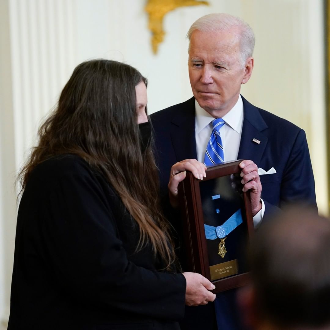 President Joe Biden on Thursday awarded the Medal of Honor to three U.S. soldiers for their service during the Iraq and Afghanistan wars, including a posthumous award for Sgt. 1st Class Alwyn Cashe, the first Black service member to receive the military award since the war on terror began n 9/11.