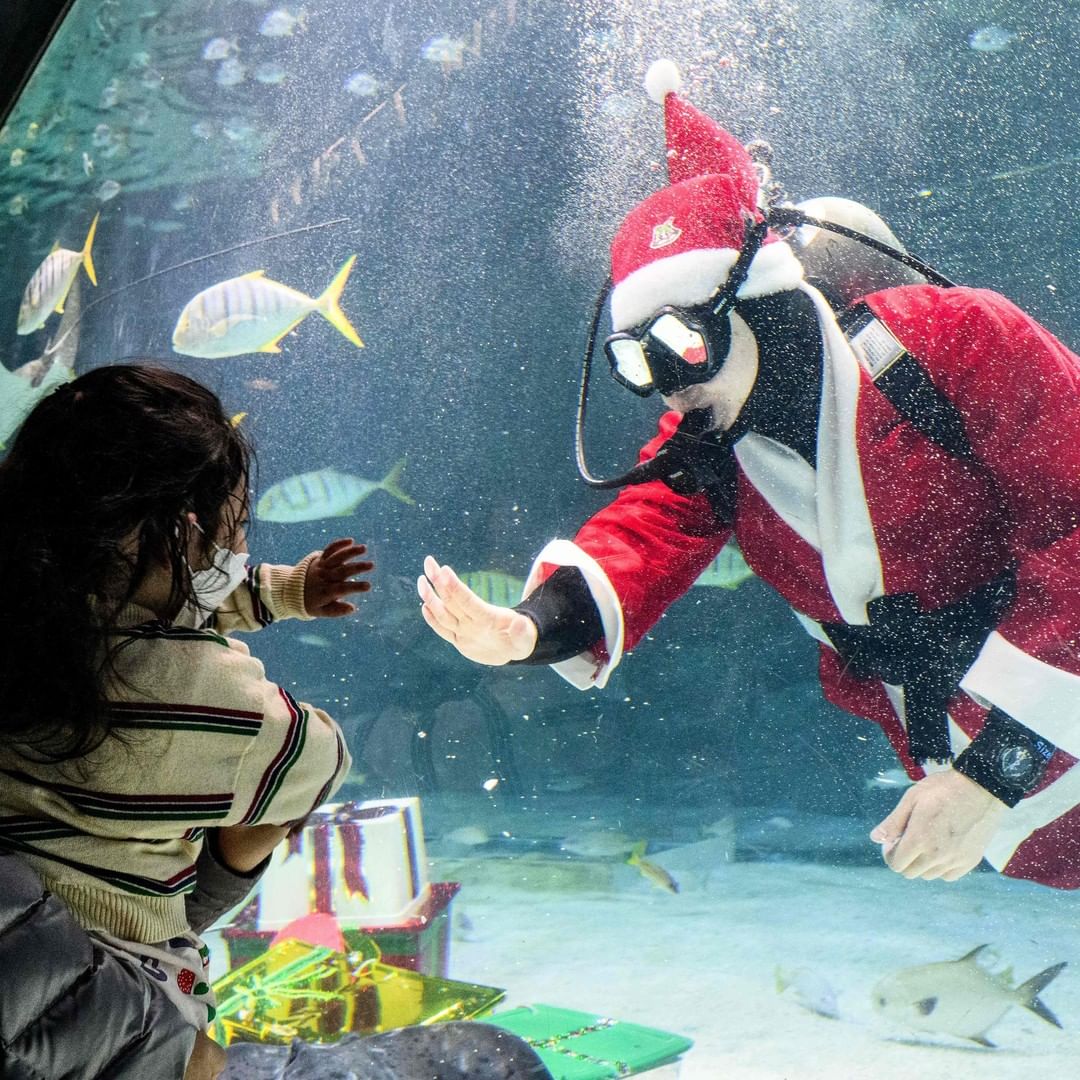 Festive Santas around the world are spreading cheer this holiday season. 1. A surfer dressed as Santa Claus rides an artificial wave in 33 degrees Fahrenheit water in the Alaia Bay surf wave pool surrrounded by the Swiss Alps, in Sion, Switzerland. 📸 @afpphoto, @gettyimages 2. Skiers and snowboarders take part in the annual Santa Ski Run for charity at Sunday River in Newry, Maine. 📸 Joseph Prezioso, @afpphoto, @gettyimages 3. A man dressed as Santa Claus rides a jet-ski around Lake Quinsigamond in Massachusetts. The second annual Santa Jet-ski ride was organized as a benefit for Toys for Tots. 📸 Christine Petersen, @worcestertelegram, part of the USA TODAY Network 4. A diver dressed as Santa Claus waves to visitors during a Christmas-themed underwater show at the COEX aquarium in Seoul. 📸 Anthony Wallace, @afpphoto, @gettyimages Tap the link in our bio to see more. #santa #holidays #holidayseason #holidayspirit #santaclaus #santasaroundtheworld