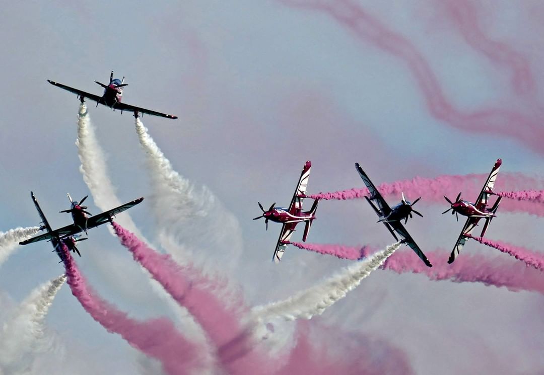 An aerobatics team performs over Qatar's capital Doha in celebration of its National Day on December 18.