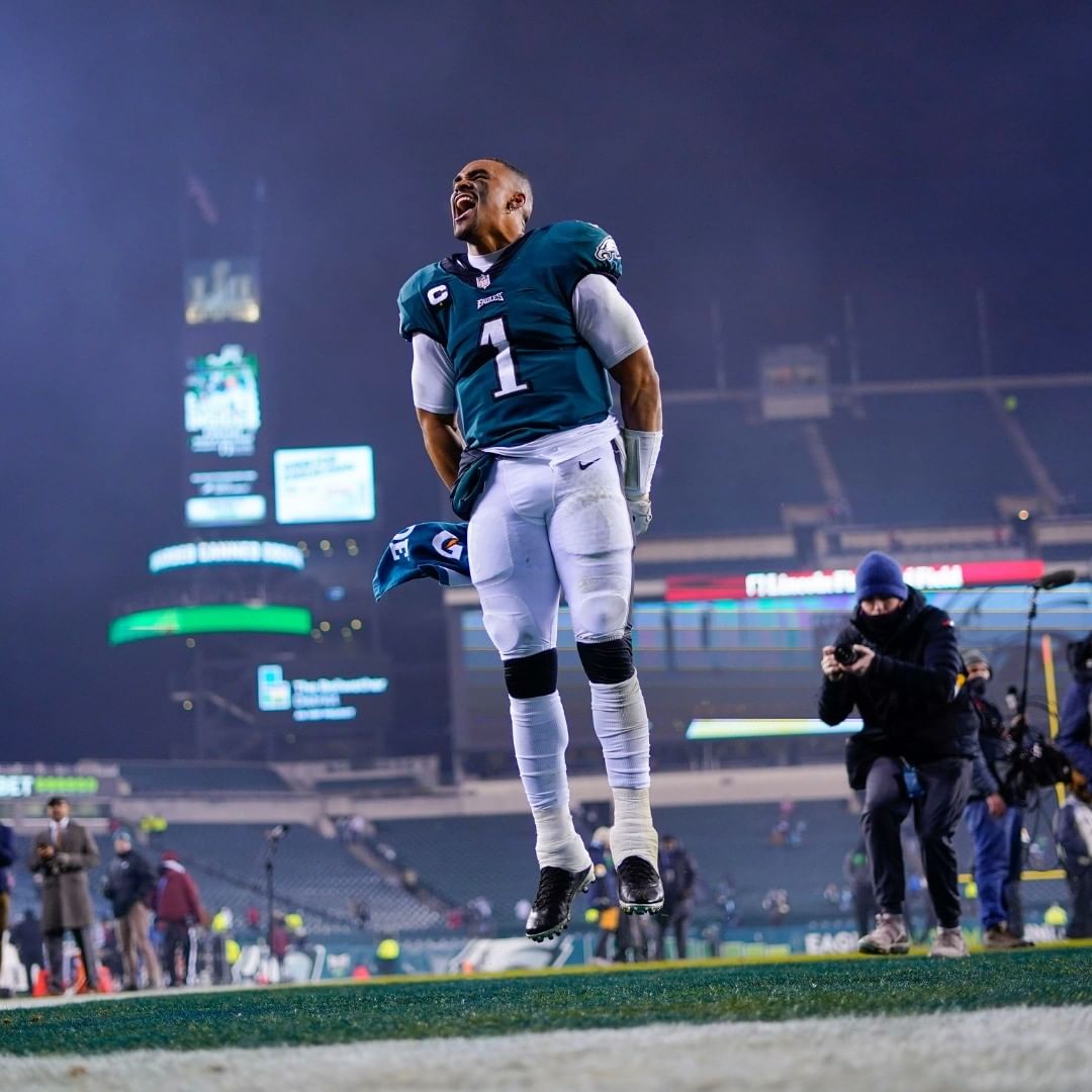 The National Football League played two games Tuesday night after they were rescheduled from Sunday due to COVID-19 concerns. In Philadelphia, Miles Sanders rushed for a career-high 131 yards, Jalen Hurts (seen here celebrating his team's win) rushed for two touchdowns and threw for another as the Philadelphia Eagles (7-7) defeated the Washington Football Team (6-8) at home 27-17. In Los Angeles, Matthew Stafford threw two touchdown passes to wide receiver Cooper Kupp and Taylor Rapp (No. 24) picked up an end zone interception of a Russell Wilson pass in the final seconds as the LA Rams (10-4) beat the struggling Seattle Seahawks (5-9) at home 20-10. For more coverage of the NFL, including the league's playoff picture heading into the remaining weeks of the season, tap the link in our bio. 📸: Matt Slocum, @apnews; Ashley Landis, @apnews #nfl #nationalfootballleague #eagles #washingtonfootballteam #wft #rams #seahawks