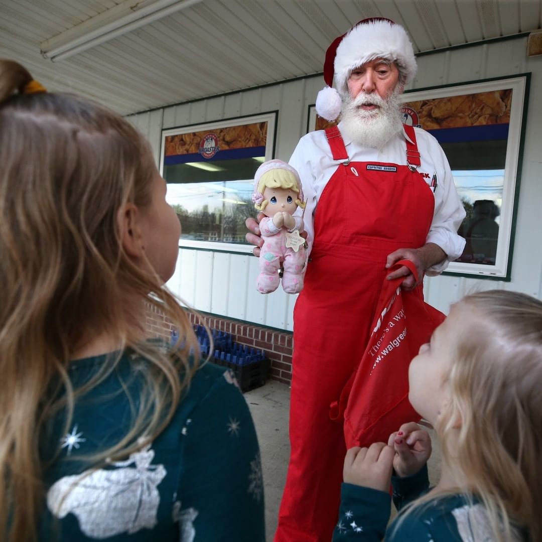 A professional St. Nick for more than four decades, Hoffman parked at Nickolas' Corner, a store and gas station on Bremen's Main Street. Some folks pulled over when they spotted Santa, and others Hoffman implored to come back with their kids.