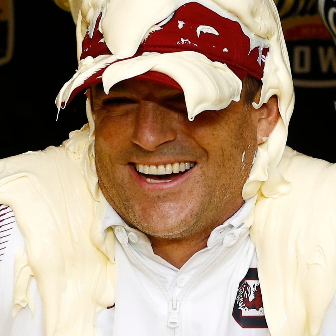 South Carolina coach Shane Beamer received a mayonnaise bath — 4½ gallons of mayonnaise, to be exact — after his Gamecocks beat North Carolina 38-21 in the Duke's Mayo Bowl at Bank of America Stadium in Charlotte, North Carolina on Thursday.