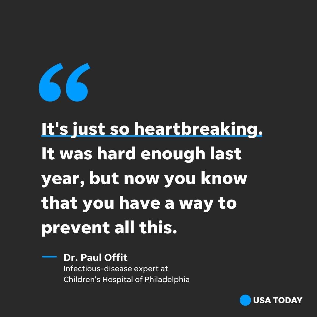 "It's just so heartbreaking," said Dr. Paul Offit, an infectious-disease expert at Children's Hospital of Philadelphia. "It was hard enough last year, but now you know that you have a way to prevent all this."