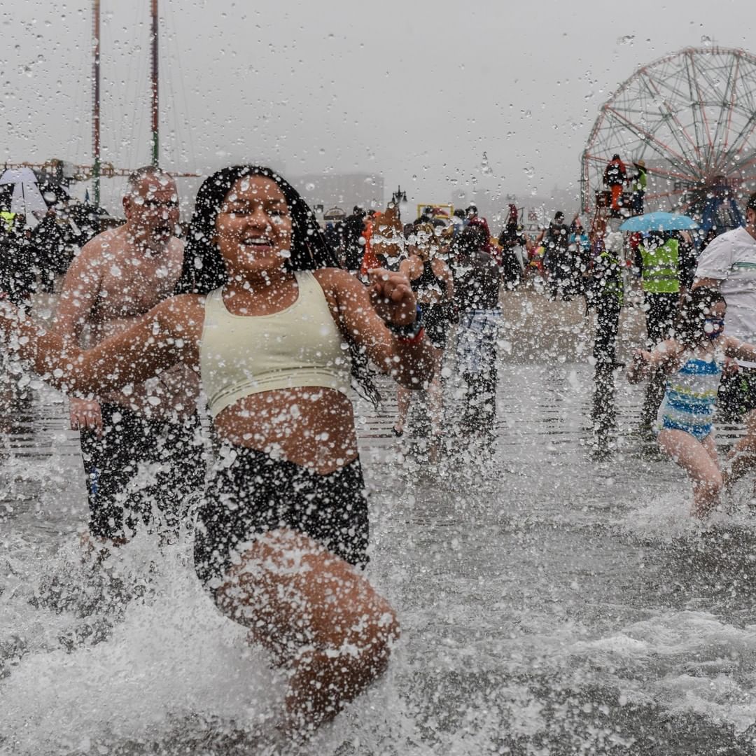 Polar plunge participants around the world kick off 2022 with an icy dip❄️ People from Lithuania to Boston took to the frigid waters, plunging and swimming, during the annual Polar Bear Plunge. The event returned to Coney Island in Brooklyn, New York this year after a hiatus last year due to COVID-19. #polarbearplunge