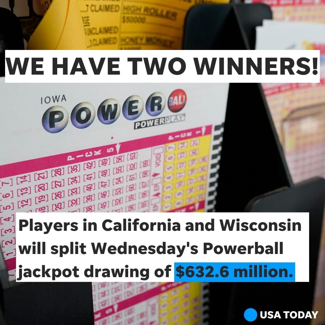 The odds of winning Wednesday night's Powerball jackpot was about 1 in 292,200,000. But two winning tickets were sold in California and Wisconsin and the fortunate winners will split $632.6 million, the seventh-largest jackpot in Powerball history.