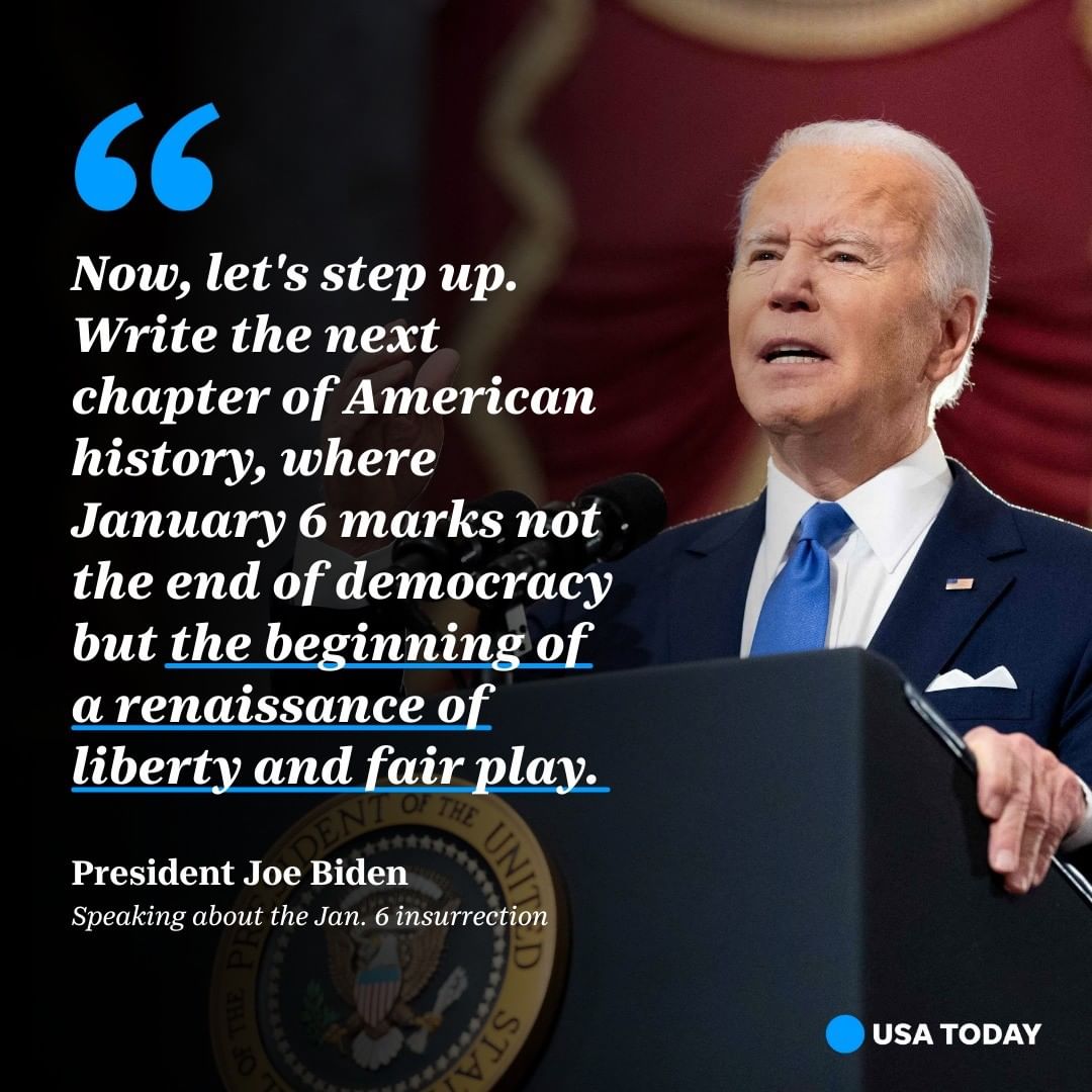 "Our democracy held. We the people endured. We the people prevailed," Biden said of the day on which Congress certified his win in the 2020 election.