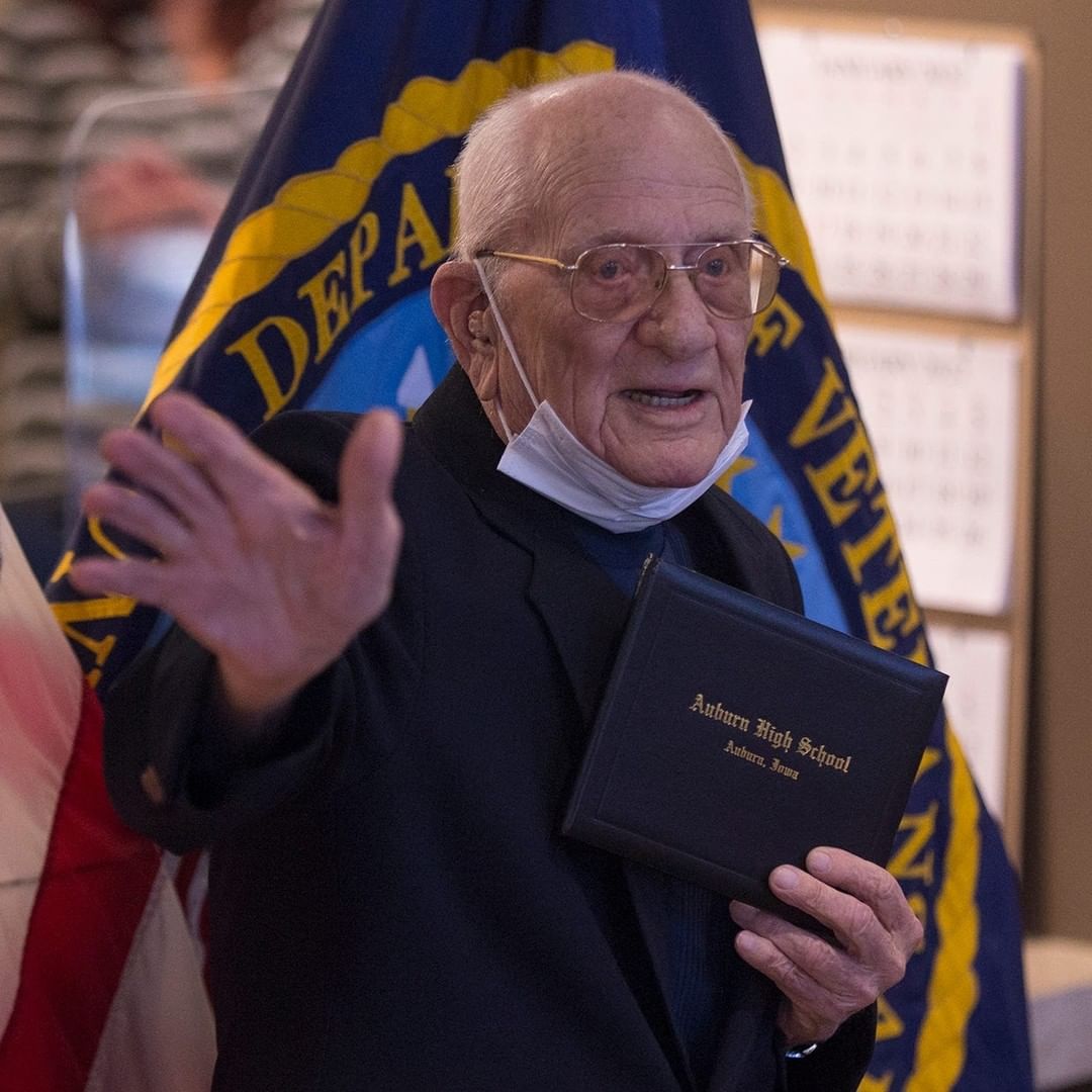 He was supposed to receive a diploma in 1943. It took 80 years, and one phone call, but Donald J. Huisenga was officially recognized as a high school graduate Wednesday. He was supposed to receive a diploma from Auburn High School — now East Sac High School in Lake View, Iowa. However, three months before he would have graduated, a different document found its way into Huisenga's hands: draft papers. An 18-year-old Huisenga traded both cap and gown for a khaki military uniform, missing graduation when he arrived for basic training in Des Moines, which followed months of U.S. Army Special Forces training at a base in Florida. In World War II, Huisenga parachuted out of a plane three days before the Normandy invasion on June 6, 1944. Later, while doing reconnaissance work, he was injured by artillery fire that blew him back "about 30 feet." Enemy troops found Huisenga propped against a fence. Huisenga entered the POW camp weighing about 175 pounds. He survived eight months as a prisoner of war before his release, when he left the camp 75 pounds lighter. After serving the U.S. Army from 1943-45, Huisenga returned to a normal life in the United States. He found work, got married, had children, and was blessed with several grandchildren, but something continued to tug at Huisenga: a regret the 98-year-old casually mentioned to Tess Gooding in San Angelo. "He was telling me about his time as a prisoner of war, at which point he mentioned that he had never graduated high school," said Gooding, a medical social worker at the San Angelo Veterans Affairs Clinic, 4240 Southwest Blvd. Click the link in our bio to read more. 📸 John Tufts, San Angelo Standard-Times #wwiiveteran
