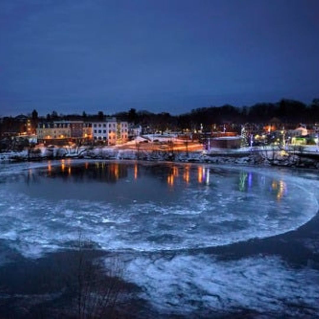 Ice disks form as a result of a current and vortex under the ice. Ice sheets begin to spin and then form into circles. But ice disks this large rarely form in locations like Westbrook.