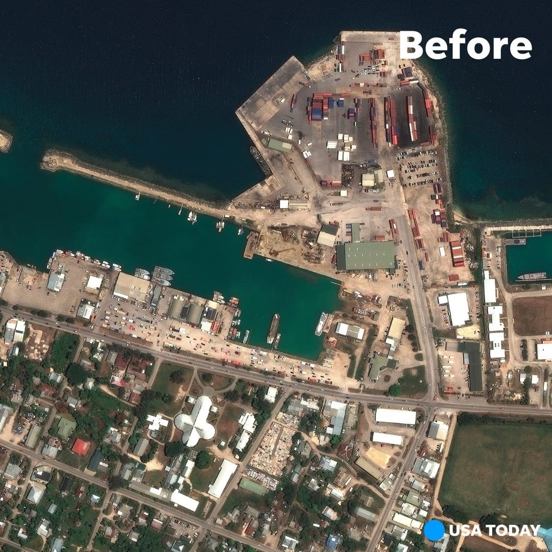 A thick layer of volcanic ash blanketed Tonga in new images showing the aftermath of Saturday's massive undersea volcanic eruption and tsunami that sparked fears of widespread disaster. Aerial and satellite photos released by New Zealand, Australia and UNOSAT, the United Nations satellite center, show once green, lush islands smothered in dark ash. Water from large waves that crashed ashore after the eruption can also be seen, alongside wrecked buildings. These stunning satellite images show the eruption of the Hunga Tonga Hunga Ha’apai volcano, which propelled a 3-mile-wide plume of ash and gas resembling a giant mushroom to about 12 miles above the water. Tsunami waves resulting from the explosion sent people rushing to higher ground, and the eruption disrupted communication with the small island nation over the weekend. Yet Tonga avoided the widespread disaster many had feared, and tsunami waves rose only to about 2.7 feet. Tonga has reported two deaths, but concerns remain over the impact on two smaller islands as fractured communication continues. Swipe to see the before/after images depicting the impact of the eruption, and tap our link in bio to read more! 📷: Getty Images, AP, Planet Labs, Maxar Technologies via AP