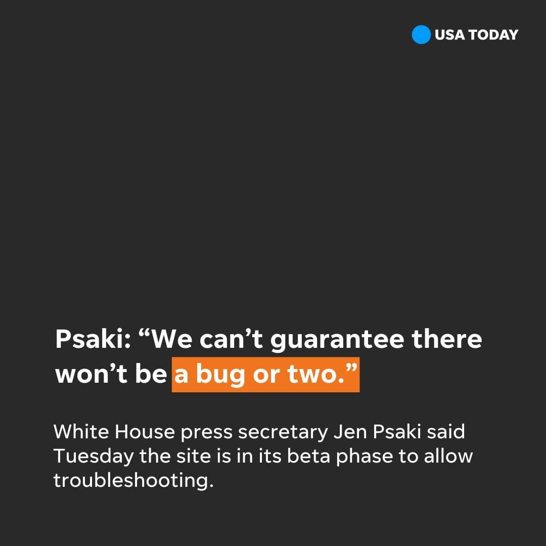 White House press secretary Jen Psaki said Tuesday the site is in its beta phase to allow troubleshooting.