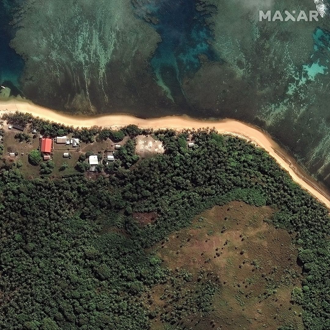 These satellite images reveal the impact of the undersea volcano eruption and tsunami.