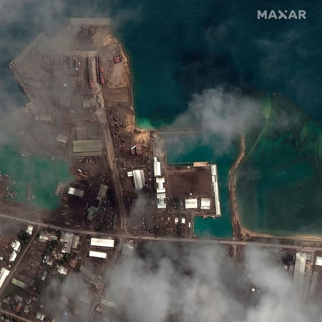 These satellite images reveal the impact of the undersea volcano eruption and tsunami.