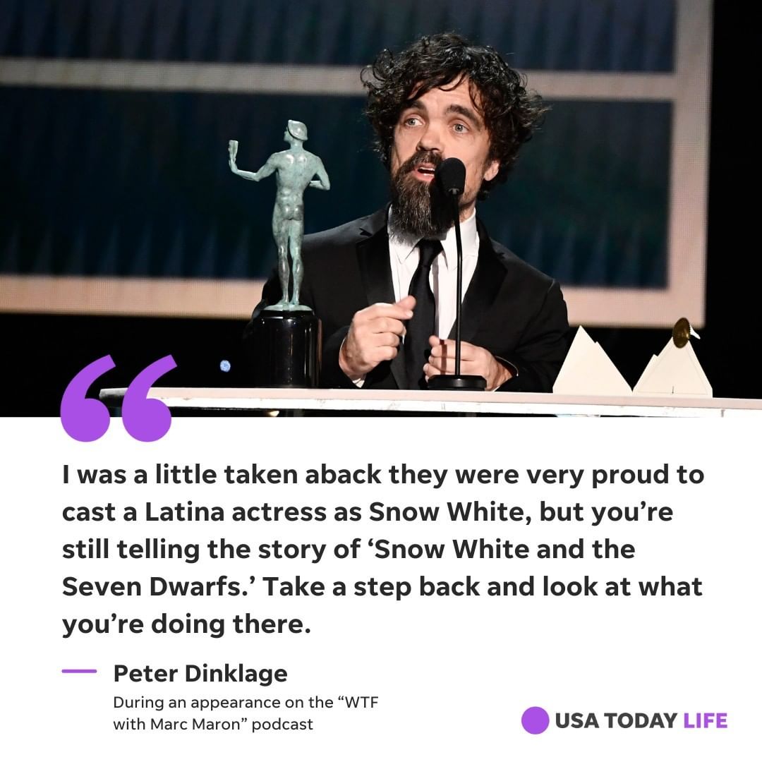 During an appearance on a Monday episode of the “WTF with Marc Maron” podcast, the former “Game of Thrones” star told host Marc Maron that remaking the story of “Snow White” is a step backward for media representation of dwarfism.