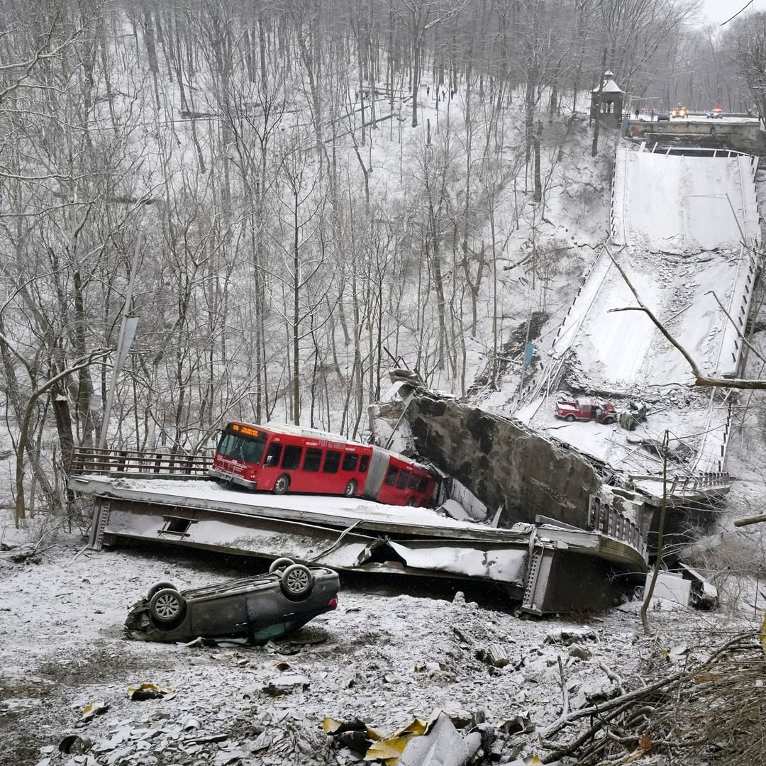 Pittsburgh Port Authority confirmed to USA TODAY that a 60-foot city bus was on the bridge during the collapse. The bus driver and two passengers escaped without injury.