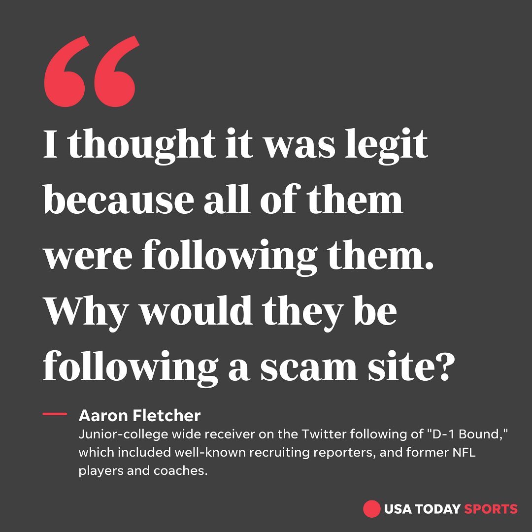 "All these kids, they're just trying to get a scholarship somewhere,” said Angel Lyons, who sent $1,000 to D-1 Bound in October on behalf of her son Noah, a football player. “And he’s out here playing with these kids’ futures, taking their money.”