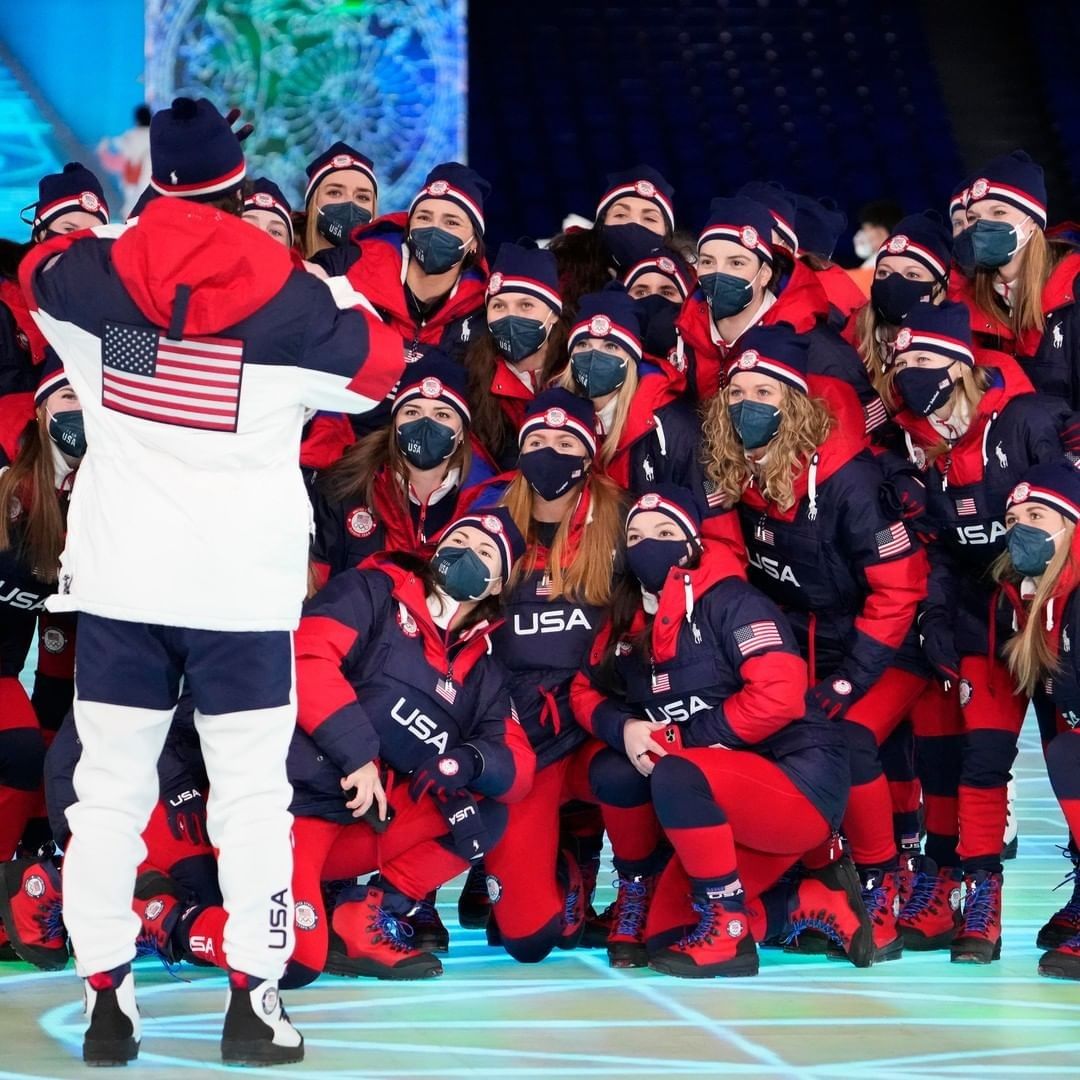 U-S-A!!! U-S-A!!! U-S-A!!! Team USA during the parade of nations at the Beijing Winter Olympics opening ceremony. Click the link in our bio for more photos from the ceremony. 📸: @harrisonhill, @robschumacher1 , @imagncontent #olympics #beijing2022