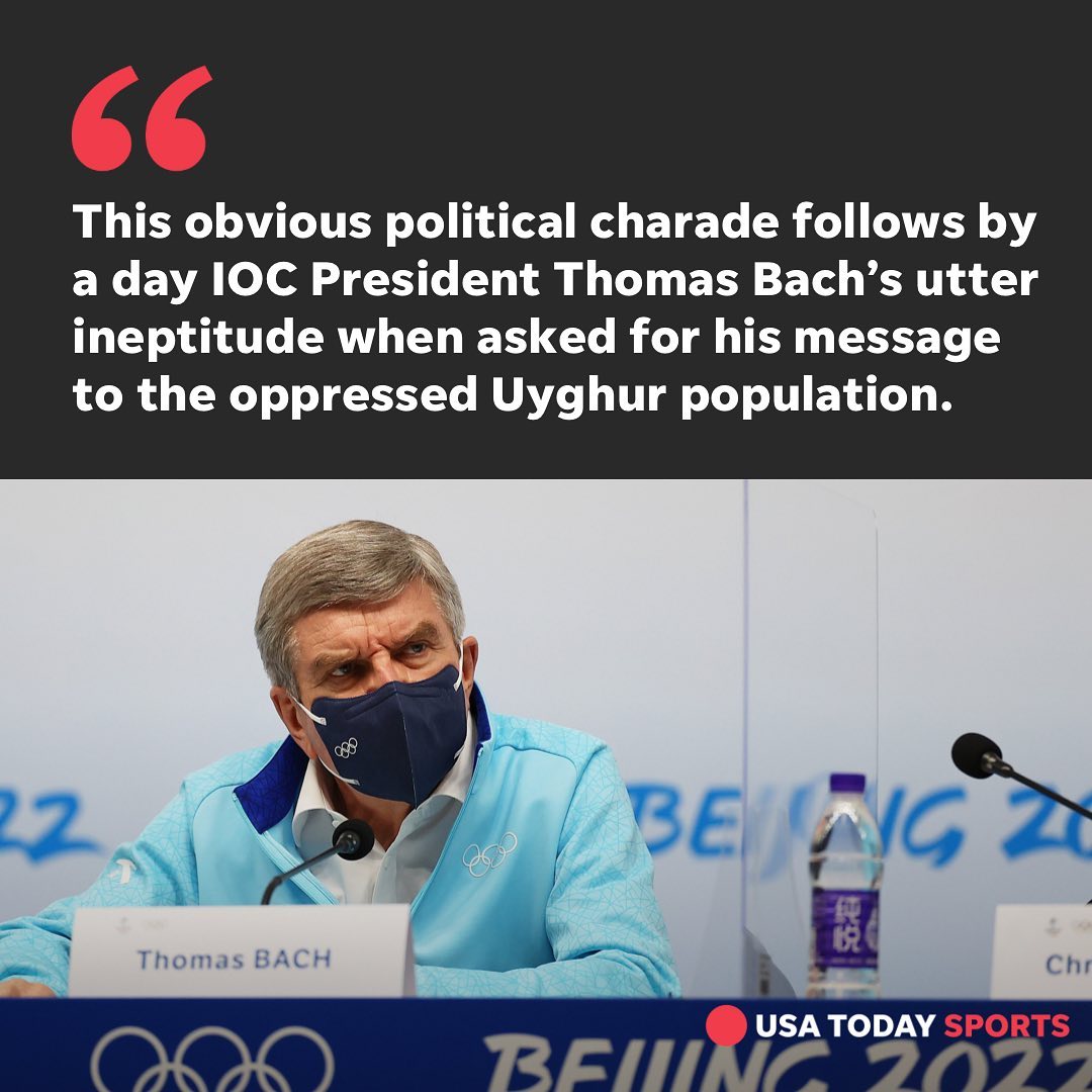Opinion for @usatodaysports: Beijing's opening ceremony unforgettable for all the wrong reasons “China hosted a grand party at the Bird's Nest, and the spectacle included shameless propaganda involving a Uyghur cross-country skier named named Dinigeer Yilamujiang to be one of two Chinese athletes to light the Olympic caldron. China must have thought it was so smart: That’ll show the West we don’t kill and torture the Uyghurs, we love them so much we’ll let one of them light the caldron. This obvious political charade follows by a day IOC President Thomas Bach’s utter ineptitude when asked for his message to the oppressed Uyghur population. He said he was not going to comment on political issues, and that was that. He could not muster one word of support or even interest in the subject. It was appalling.” Go to the link in bio to read Christine Brennan’s column | #openingceremonies #china #Uyghur #olympics #winterolympics #winterolympics2022
