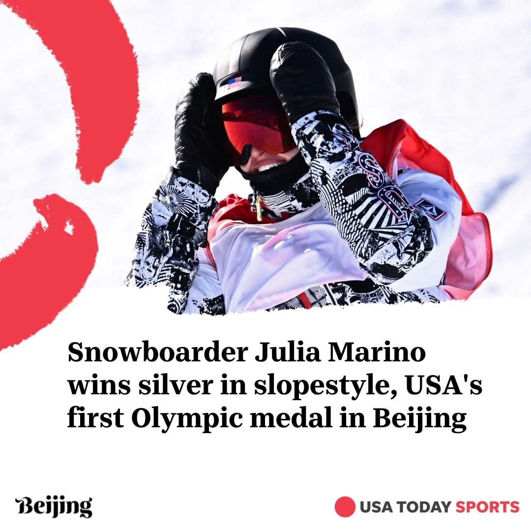 Julia Marino won Team USA's first medal in the 2022 Beijing Olympics – a silver in women's snowboard slopestyle.