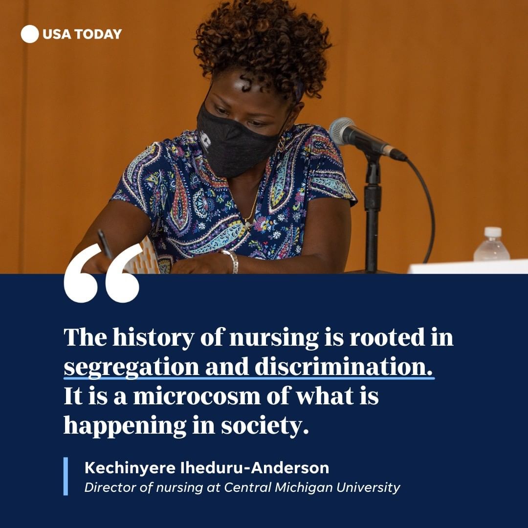 Every day, Kechinyere Iheduru-Anderson walked into work at a Massachusetts hospital with her fingers crossed, holding her breath. The Black, Nigerian-born nurse braced herself for the demeaning treatment. Her supervisors brushed off patient taunts. Her white counterparts doubted the accuracy of her patient charts, looking for faults. She watched as more senior staff rudely bossed around Black nursing assistants. She’d pray her caustic co-workers weren’t on the surgical unit schedule that day. "Or you hope that when you go to work, that they get floated to another unit, just so you don't have to work with them," Iheduru-Anderson said. For years, she said, higher-ups dismissed her complaints, citing the longtime careers of some of her co-workers. “Are you sure you didn’t misunderstand?” they said. Iheduru-Anderson stuck it out. A nurse of three decades, she lives in Mount Pleasant, Michigan, and directs Central Michigan University’s nursing program. She’s dedicated her career to researching racism within the nursing field and mentoring young nurses of color. “The history of nursing is rooted in segregation and discrimination. It is a microcosm of what is happening in society,” she said. “For the most trusted profession, it is kind of ironic, isn't it? The profession that is supposed to care for people that cannot even care for its own constituents.” A survey of more than 5,600 nurses by the National Commission to Address Racism in Nursing reported an overwhelming majority of nurses of color say they experienced or witnessed racism. Iheduru and others draw on their experiences to fight it. Read more at the link in our bio.