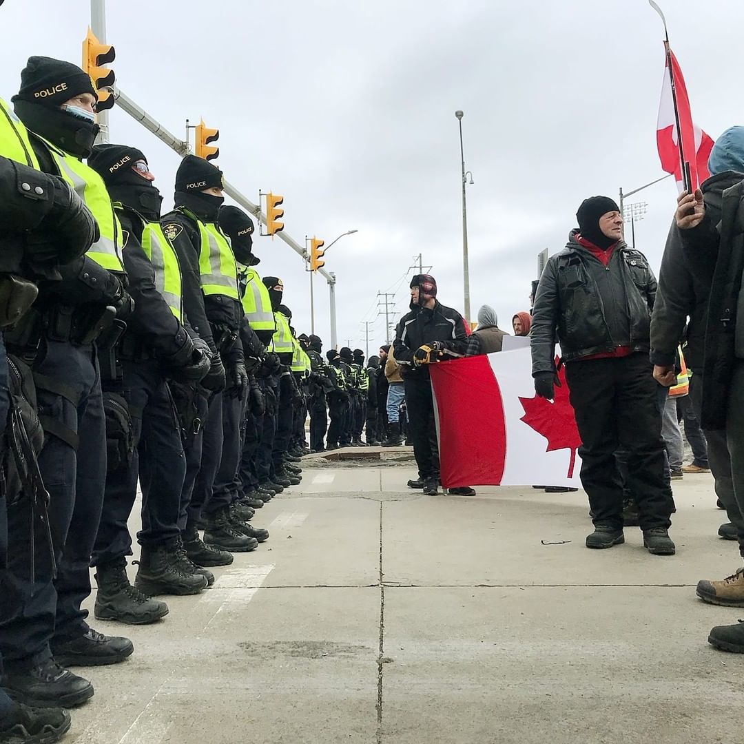 A pandemic restrictions protest that for days has disrupted trade between the U.S. and Canada at a major border crossing showed signs of dispersing Saturday morning after a court ruling and a stepped up police presence. Dozens of police officers moved into position Saturday morning near protesters on the Canadian side of the crossing. For six days, protesters have been blocking the Canada-to-US crossing at the Ambassador Bridge, which connects Detroit and Windsor. While many protesters began driving away as police approached Saturday, others appeared to be staying put. Some sang the Canadian national anthem as a man waved a Canadian flag attached to a hockey stick. The word "Freedom" was written on the flag. About 50 protesters stayed in or near their pickup trucks overnight Friday, despite warnings and a Friday order from a judge on to end the blockade that has paralyzed U.S.-Canada trade through the crossing, triggering the auto industry to scale back production in both countries. For more COVID-19 updates, click the link in our bio.
