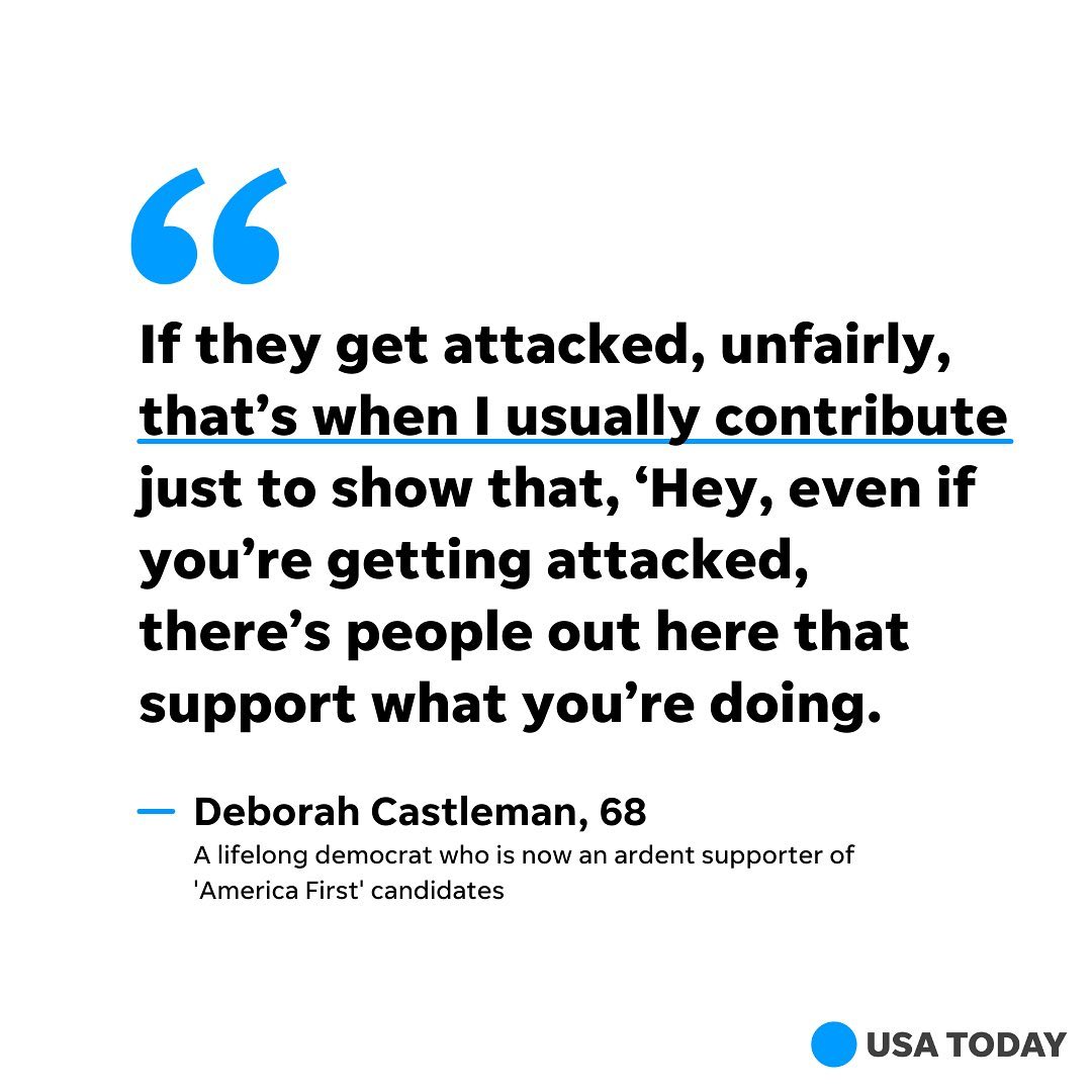 Deborah Castleman was a life-long Democrat. Castleman, who worked on former President Bill Clinton’s 1992 campaign and in his administration, said Donald Trump was her last choice. Then she heard him speak. He awakened a sense of patriotism in her, she said. Now, Castleman gives to some of the most ultra-conservative members of Congress, all ardent Trump followers who have picked up his America First mantle: Marjorie Taylor Greene of Georgia, Matt Gaetz of Florida, Lauren Boebert of Colorado, Madison Cawthorn of North Carolina, and Paul Gosar of Arizona. She gave them nearly $4,000 total in 2021. She and six other donors who spoke to USA TODAY are among the thousands of individual contributors who are giving to the farthest-right members of Congress as they seek reelection. Inspired by their brash positions and the backlash they draw, the donors are helping these lawmakers amass campaign fortunes with little to no help from corporate political action committees, extending the right-wing populist movement Trump started. To read more about fundraising efforts this election cycle, visit USATODAY.com #americafirst #congress #2022midterms