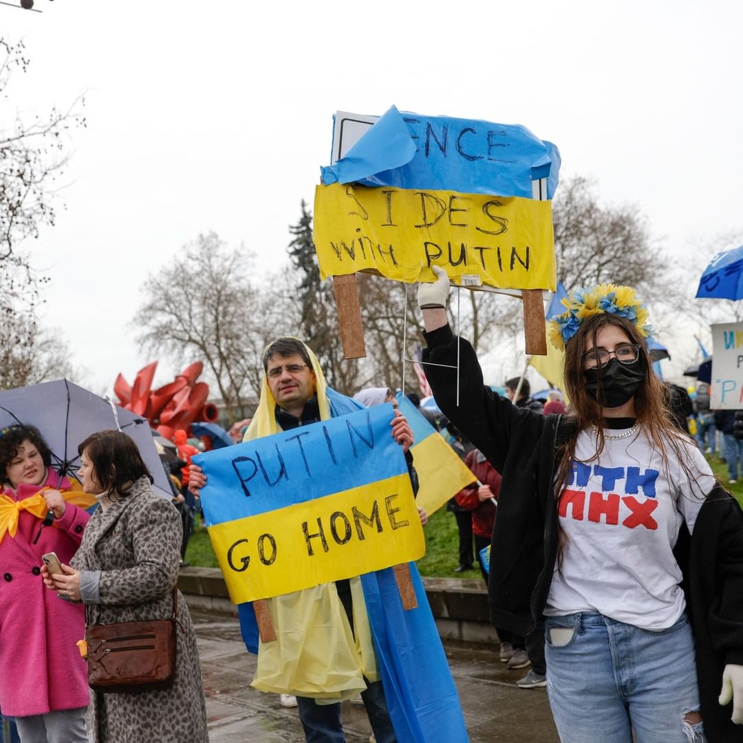 People around the world are protesting Russia's invasion of Ukraine and speaking up.