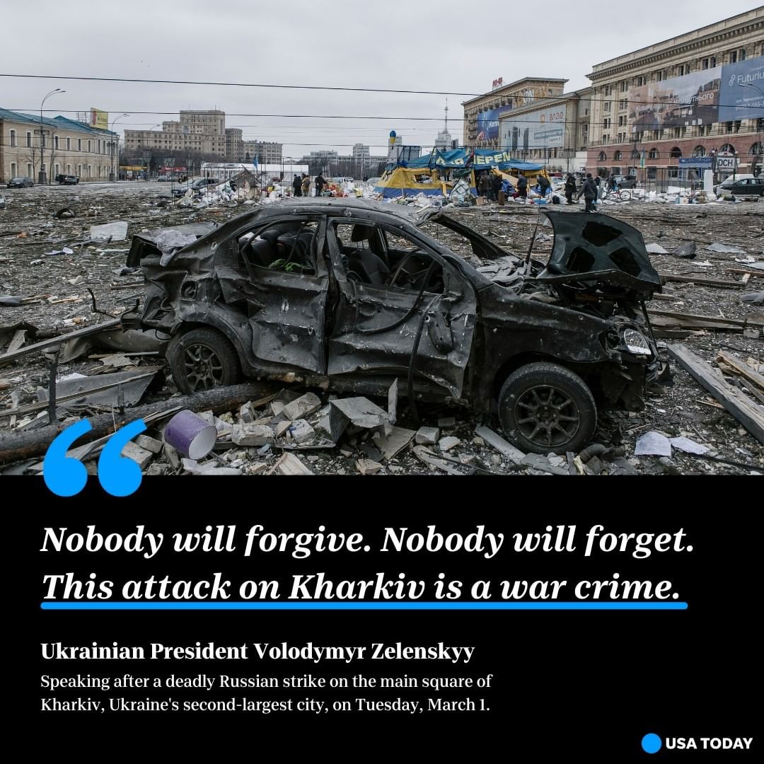 Ukrainian President Volodymyr Zelenskyy called the attack on the city's main square “frank, undisguised terror."