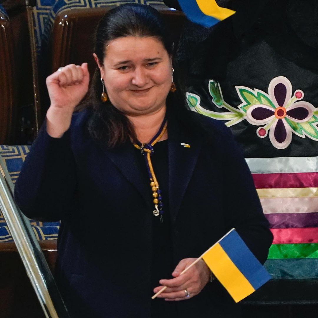 First Lady Jill Biden entered the House chamber with her guests for this evening's speech, including the Ukrainian Ambassador to the U.S.